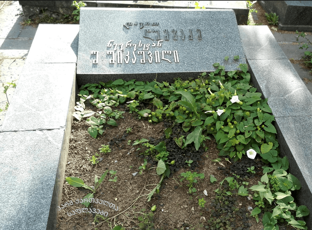 დაკრძალულია მწერალთა და საზოგადო მოღვაწეთა დიდუბის პანთეონში. მასთან ერთად დაკრძალულია დავით დუმბაძე (1897-1970) – საქართველოს კულტურის დამსახურებული მუშაკი.