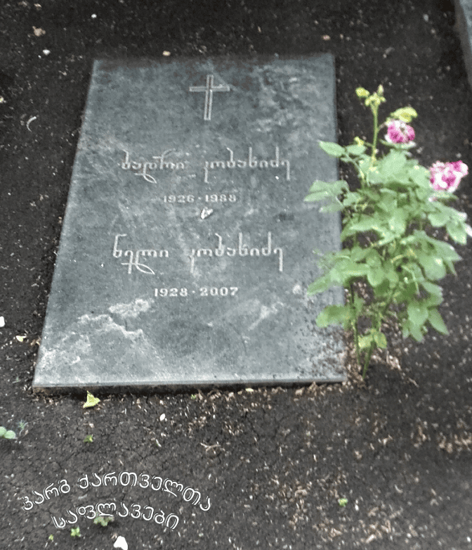 დაკრძალულია მწერალთა და საზოგადო მოღვაწეთა დიდუბის პანთეონში. მასთან ერთად დაკრძალულია ბადრი კობახიძე (დ. 8 ივნისი, 1926, სოხუმი — გ. 1 სექტემბერი, 1988, თბილისი) – მსახიობი, საქართველოს სახალხო არტისტი.