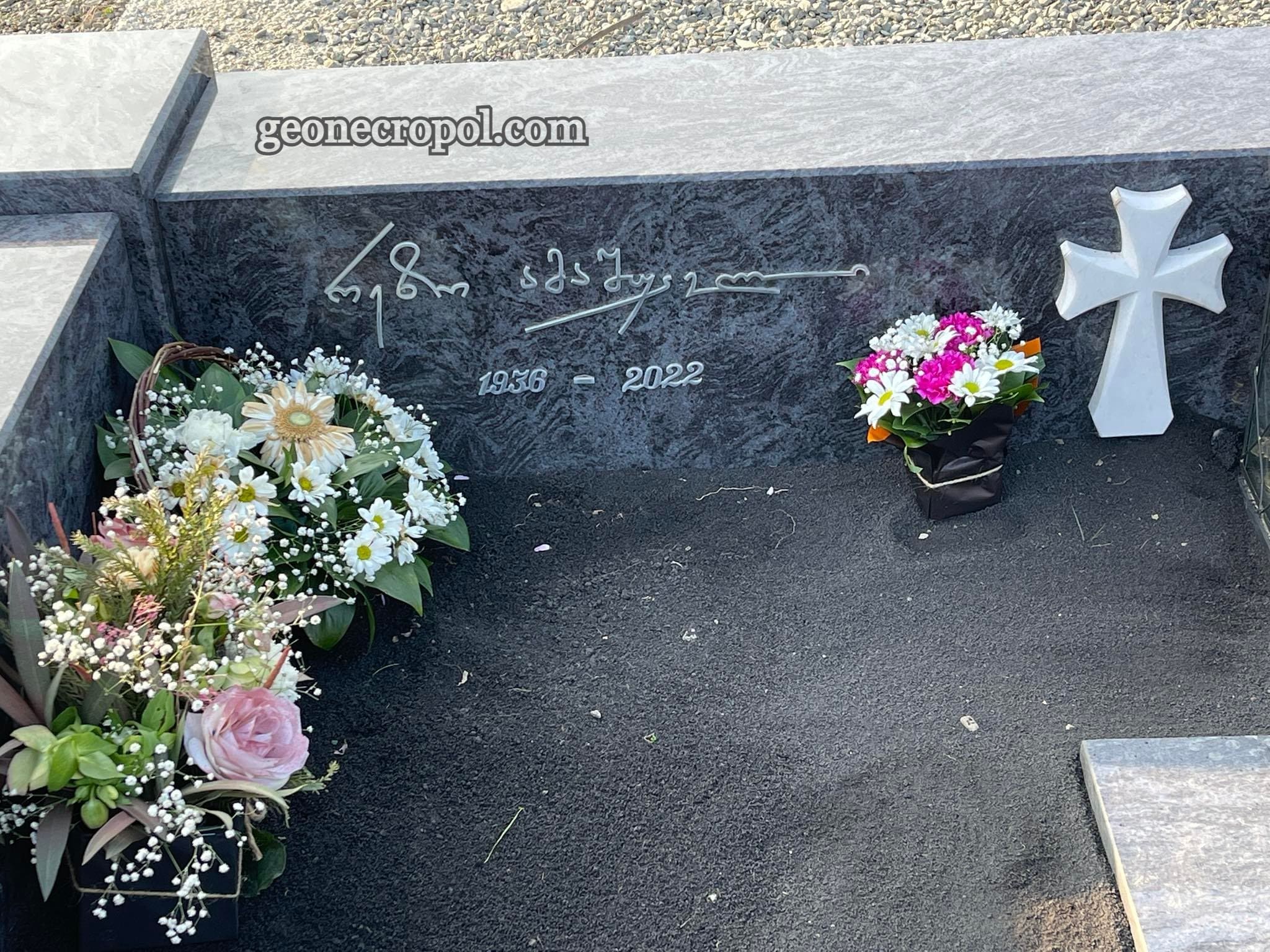 დაკრძალულია თბილისში, საბურთალოს პანთეონში. საფლავის ფოტო მოგვაწოდა ქალბატონმა ბაია ამაშუკელმა, რისთვისაც ვუხდით მადლობას.